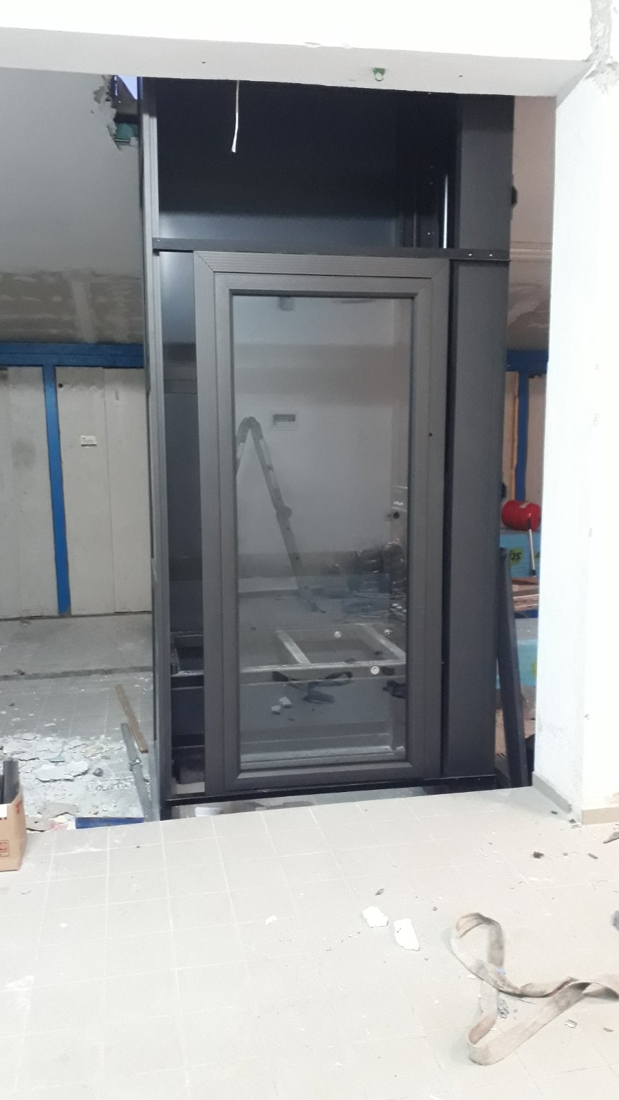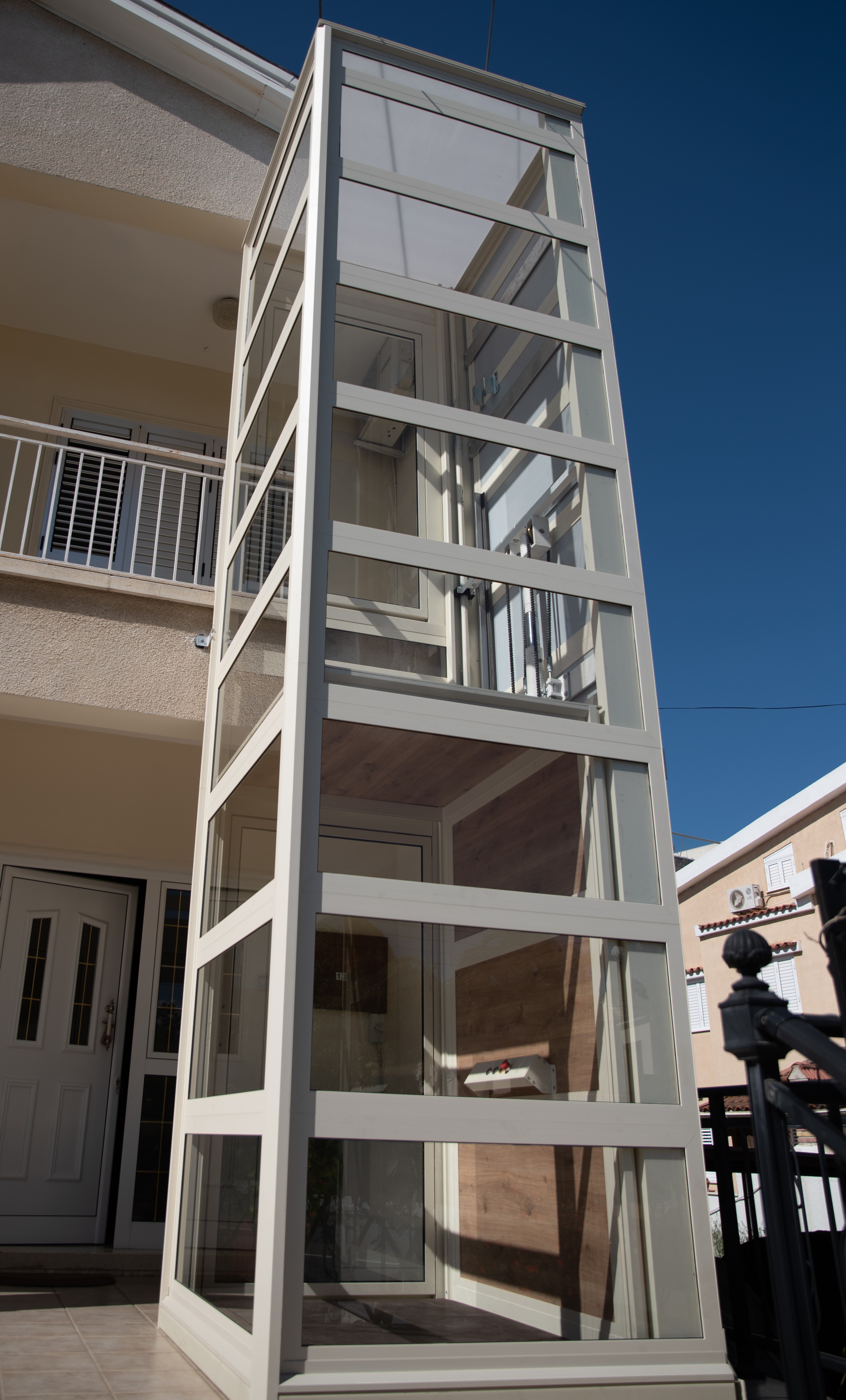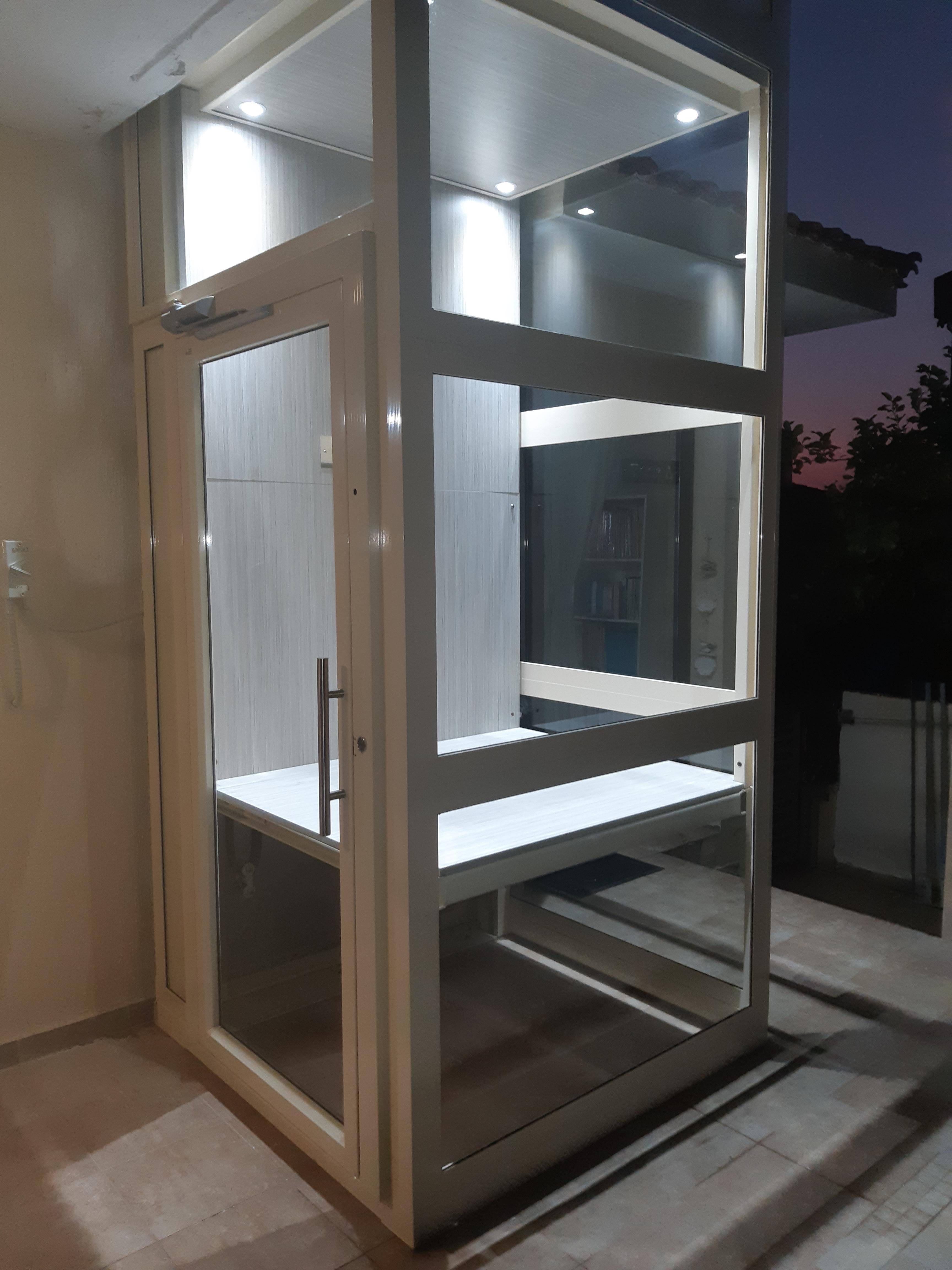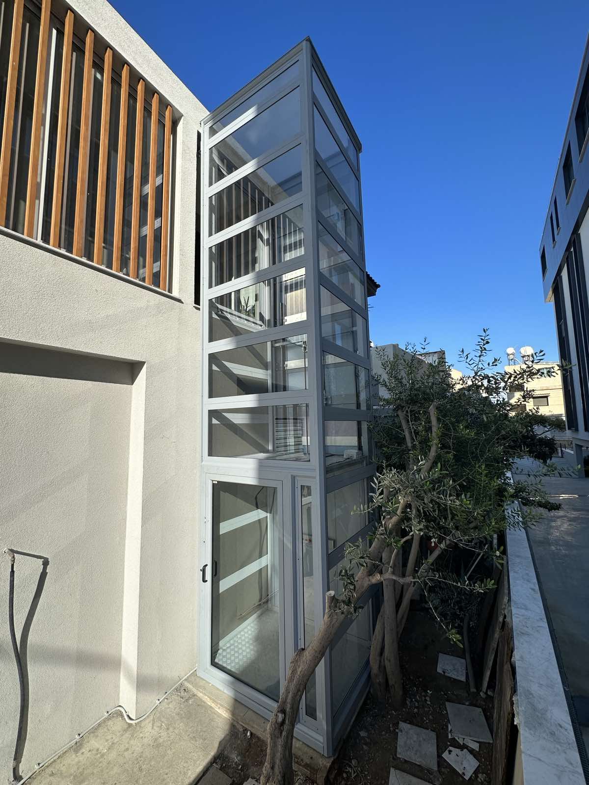 Κάθετος ανελκυστήρας ελληνικής κατασκευής από αλουμίνιο.