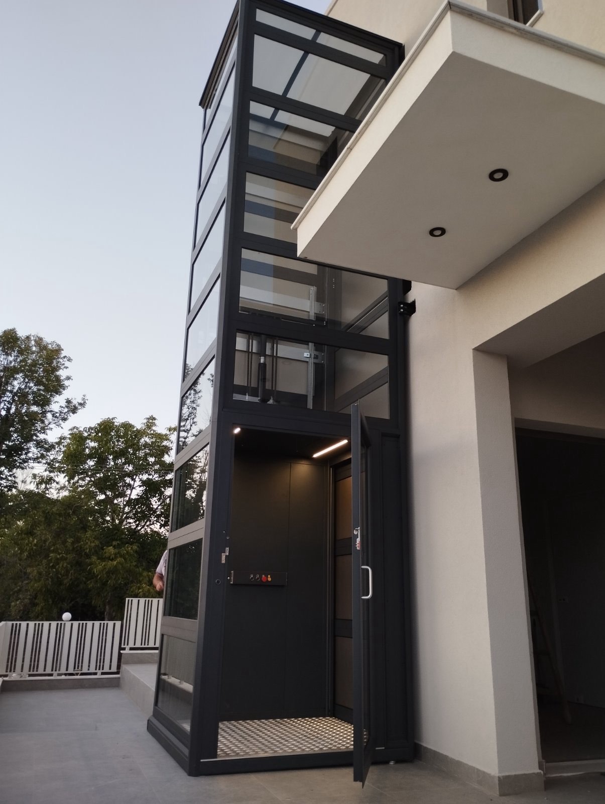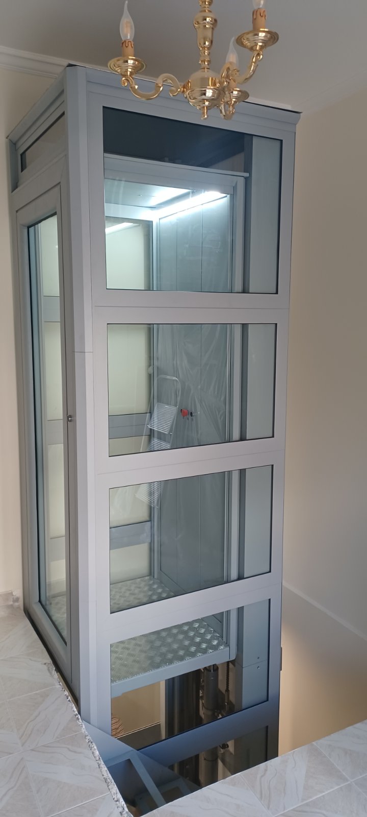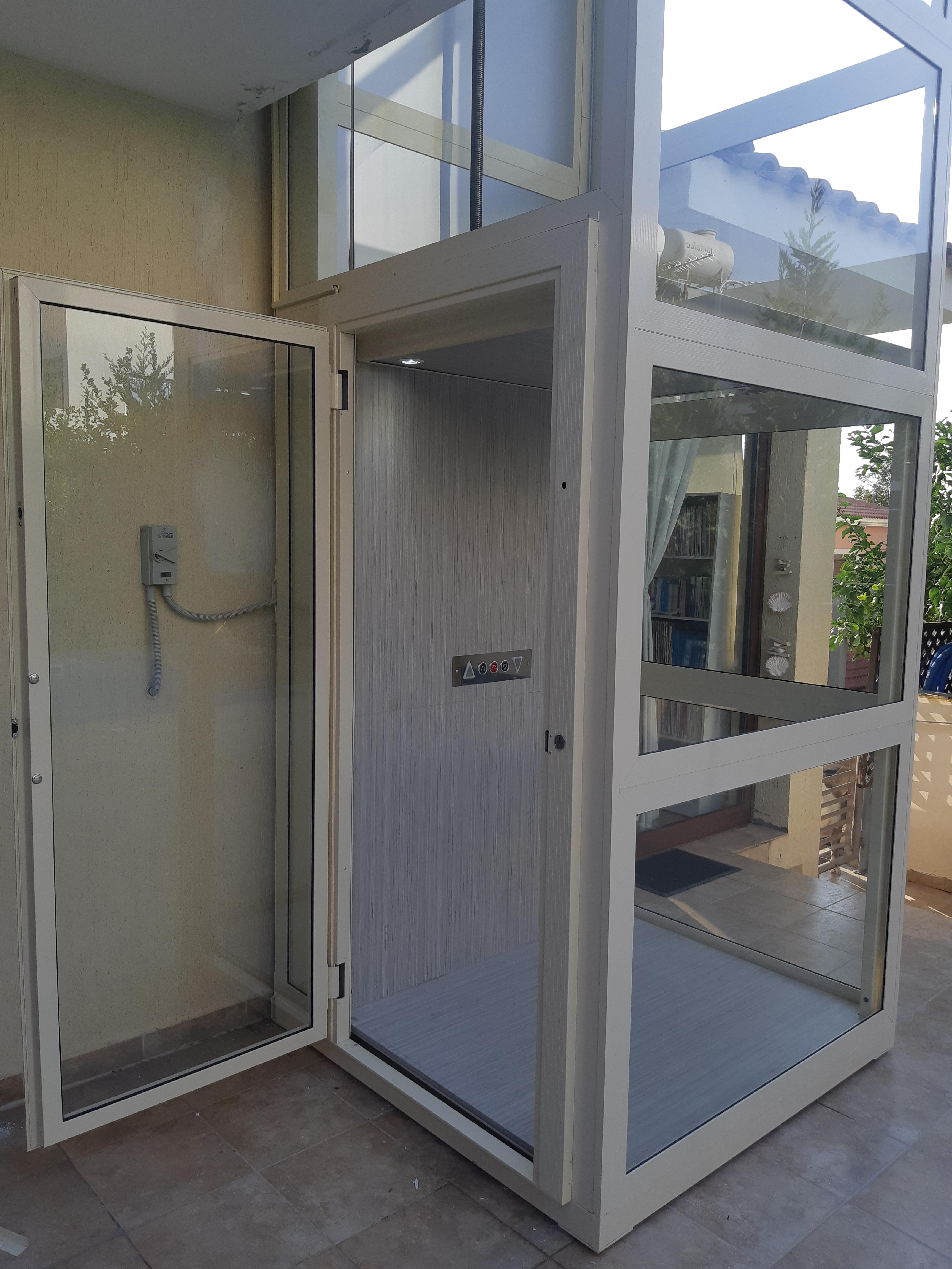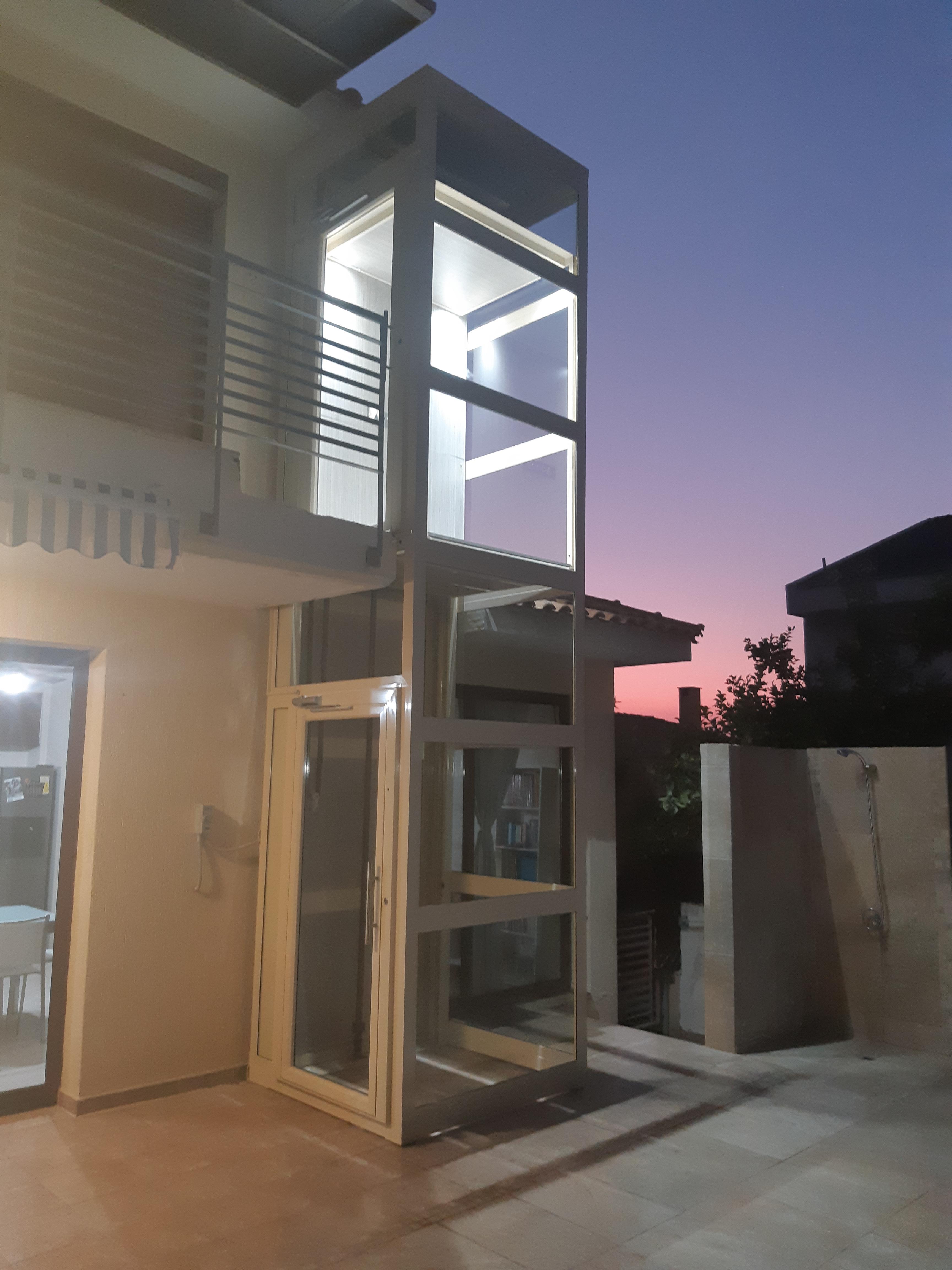 Κάθετος ανελκυστήρας ελληνικής κατασκευής από αλουμίνιο.