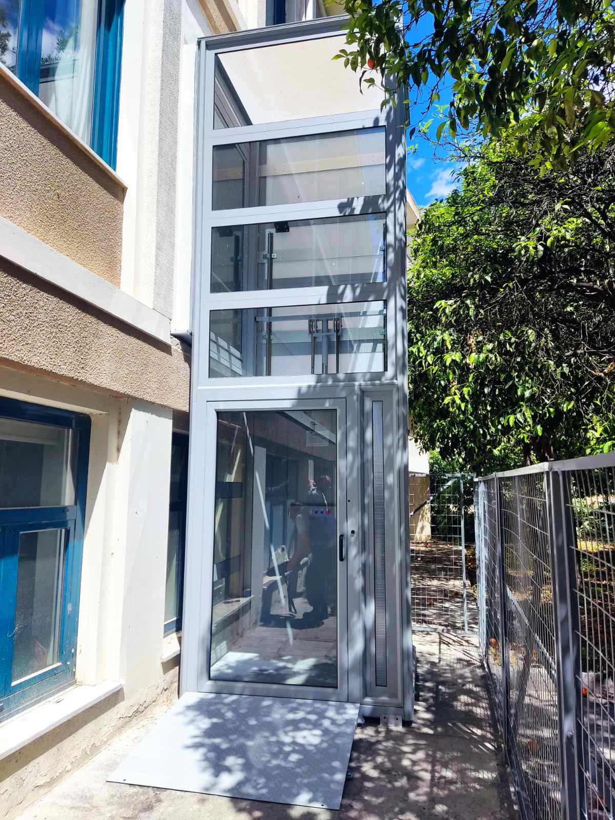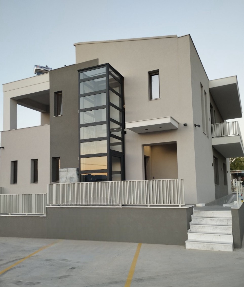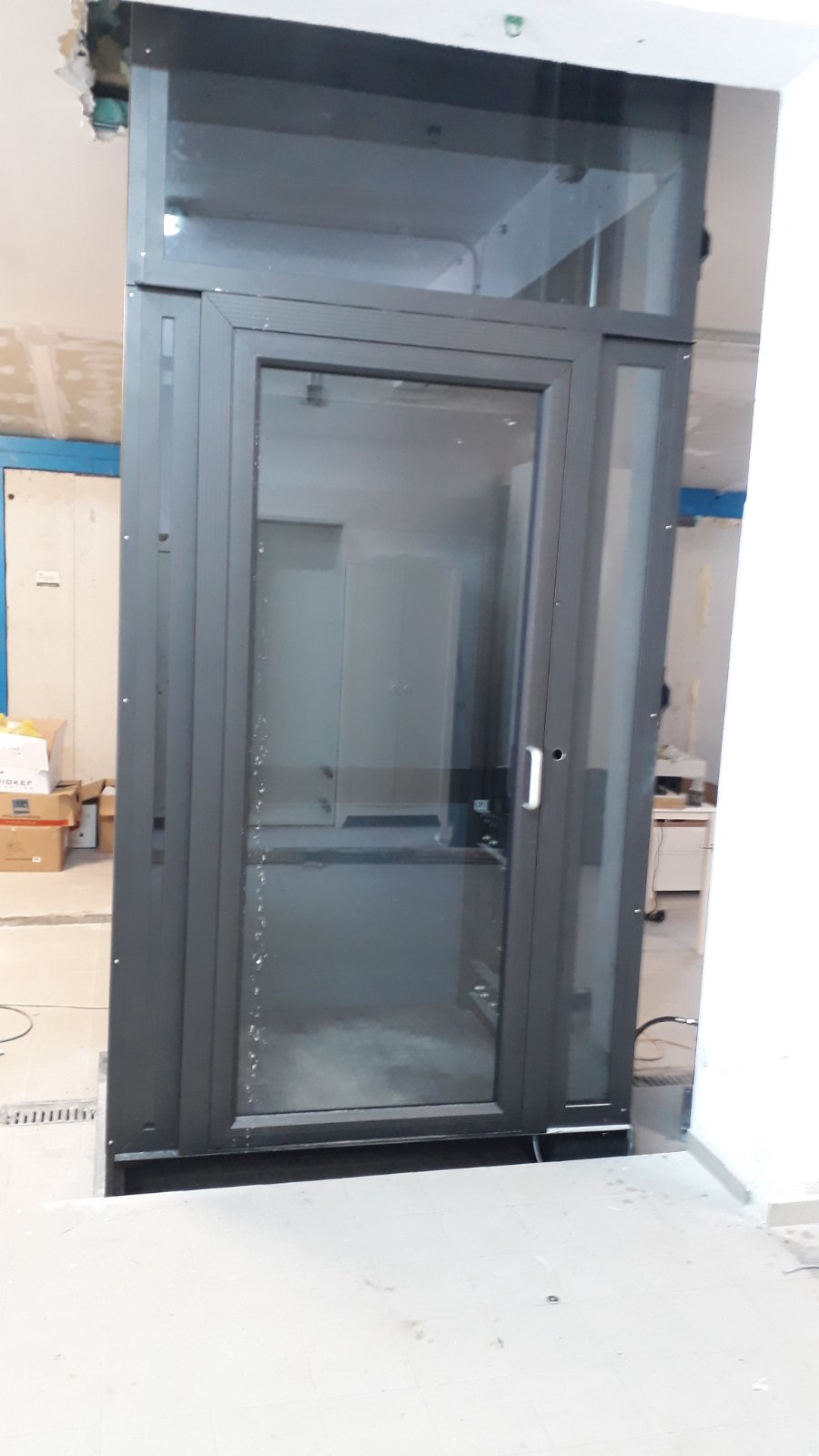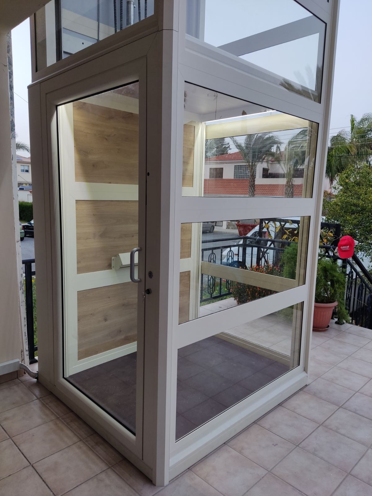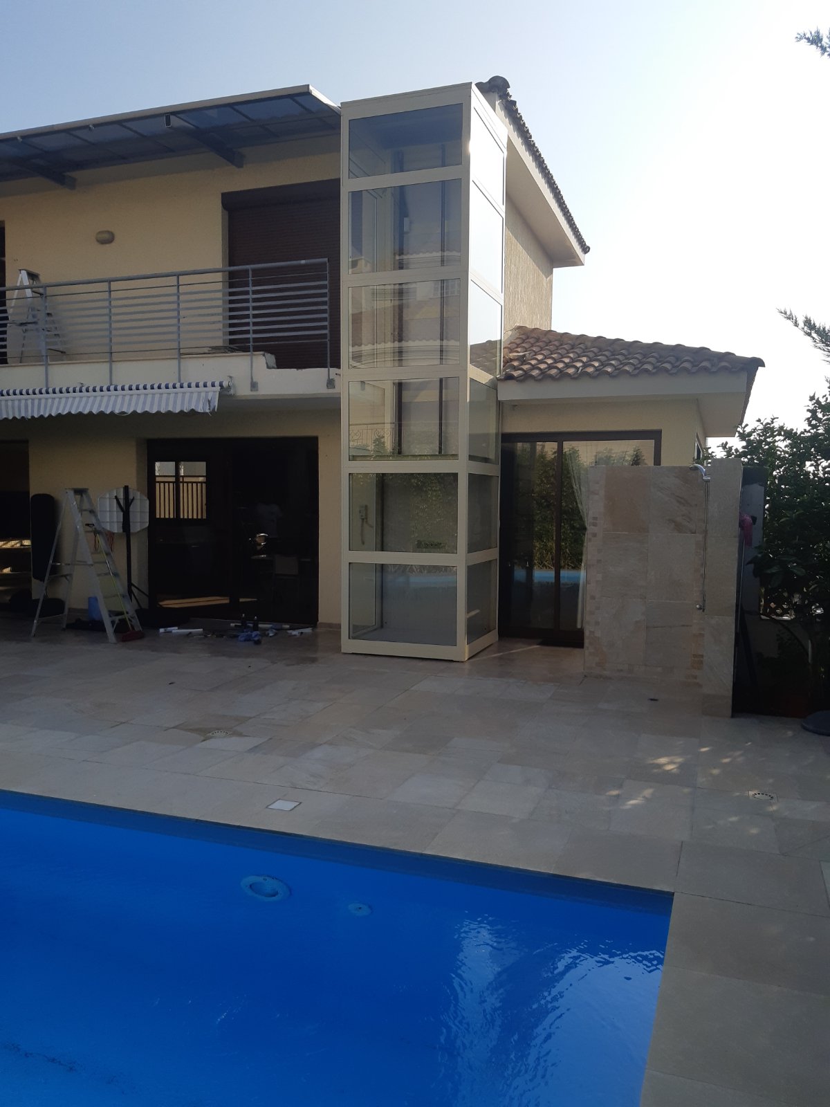 Κάθετος ανελκυστήρας ελληνικής κατασκευής από αλουμίνιο.