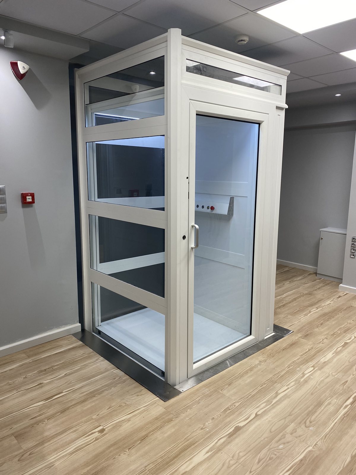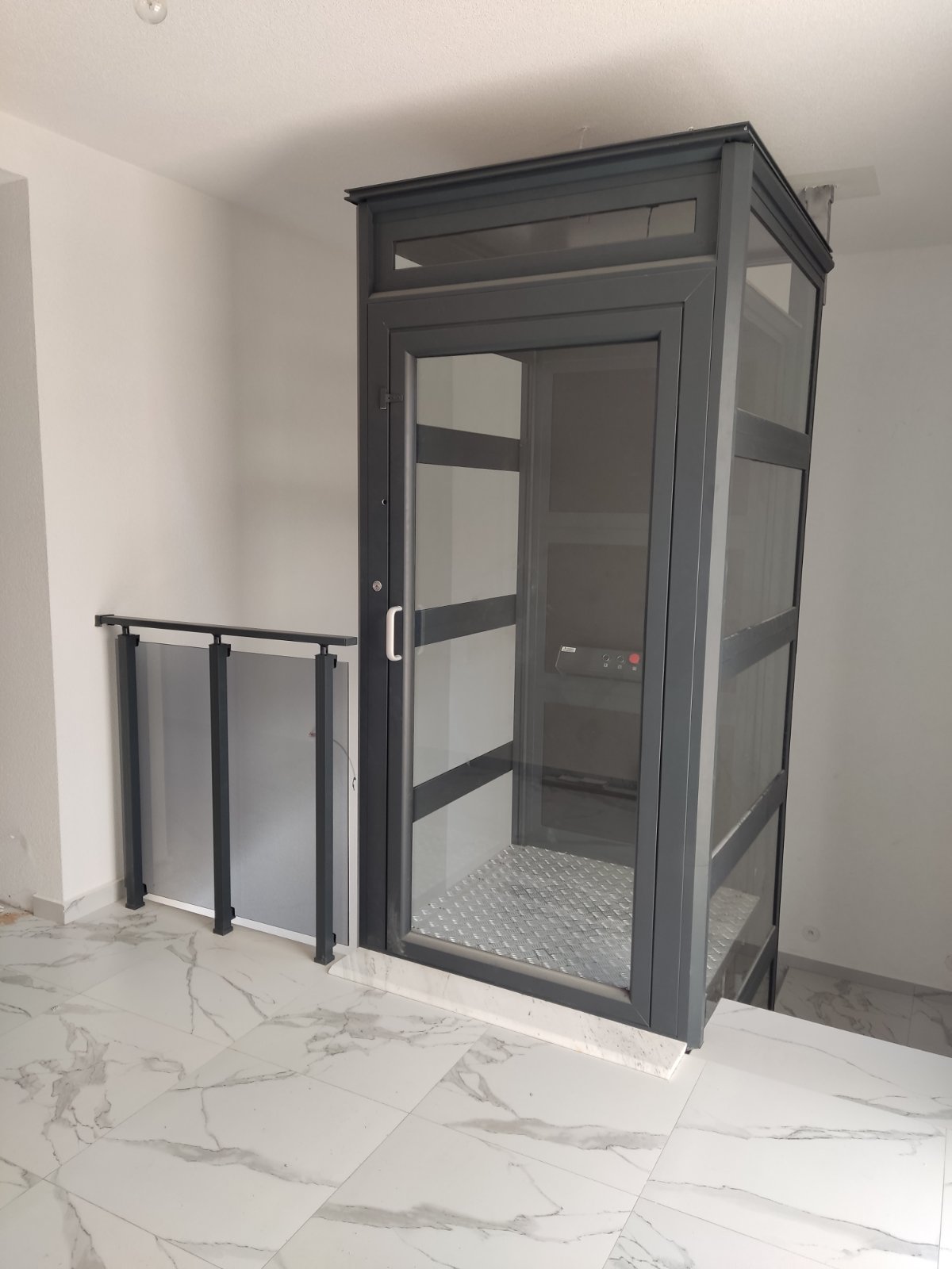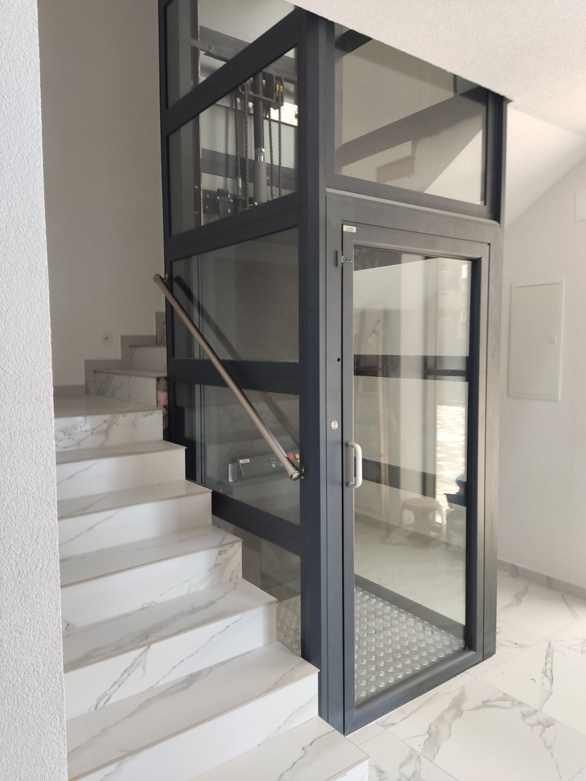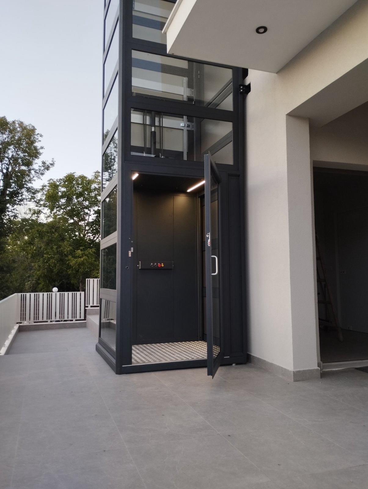 Κάθετος ανελκυστήρας ελληνικής κατασκευής από αλουμίνιο.